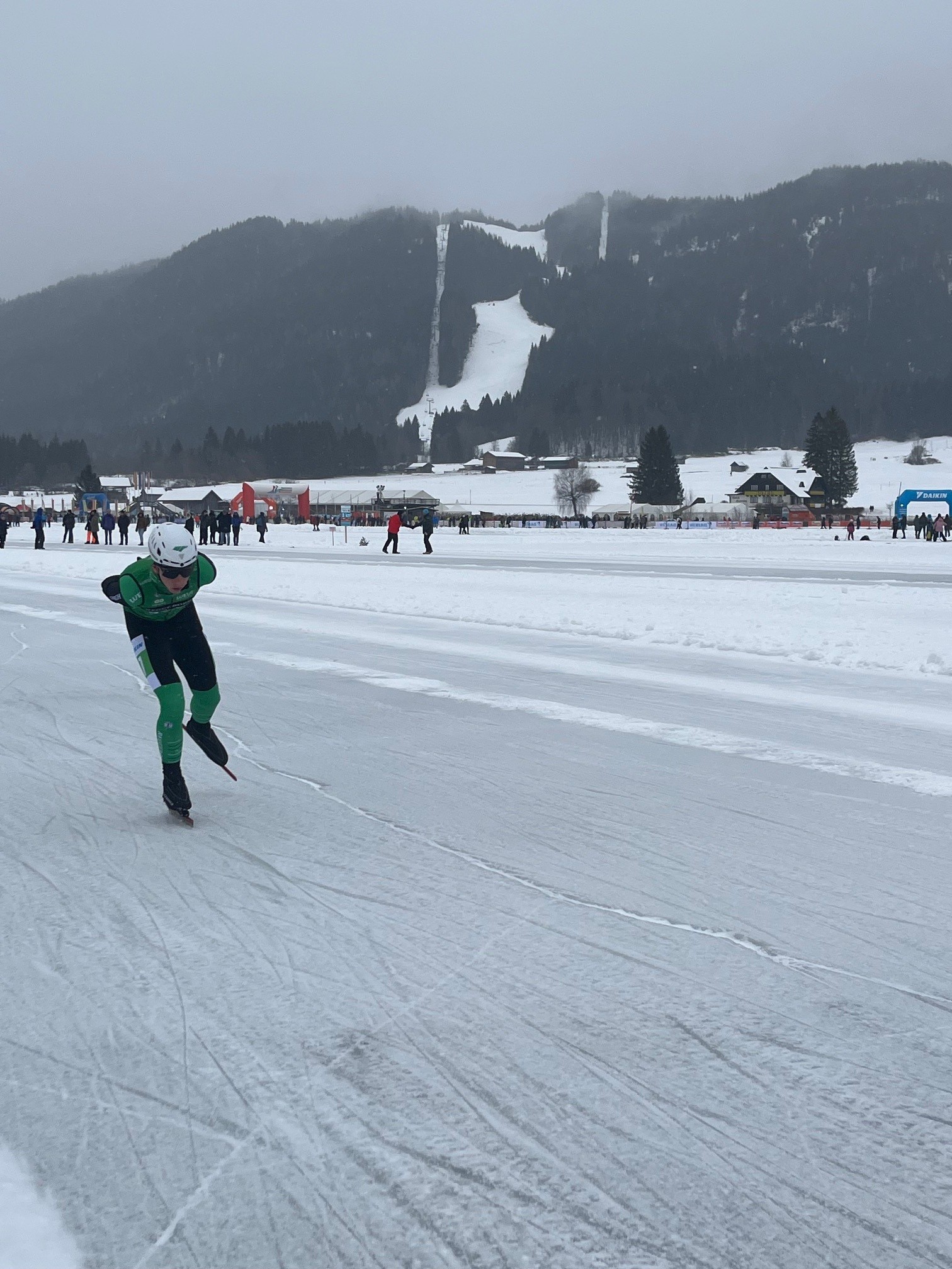 Diverse leden van de Nijkerkse schaats en skeelerclub waren dit jaar in de 2e helft van januari actief op de prachtige Weissensee in Oostenrijk. Bij gebrek aan natuurijs in Nederland komen wedstrijdrijders en toerschaatsers daar samen om deel te nemen aan de Alternatieve Elfstedentocht.
